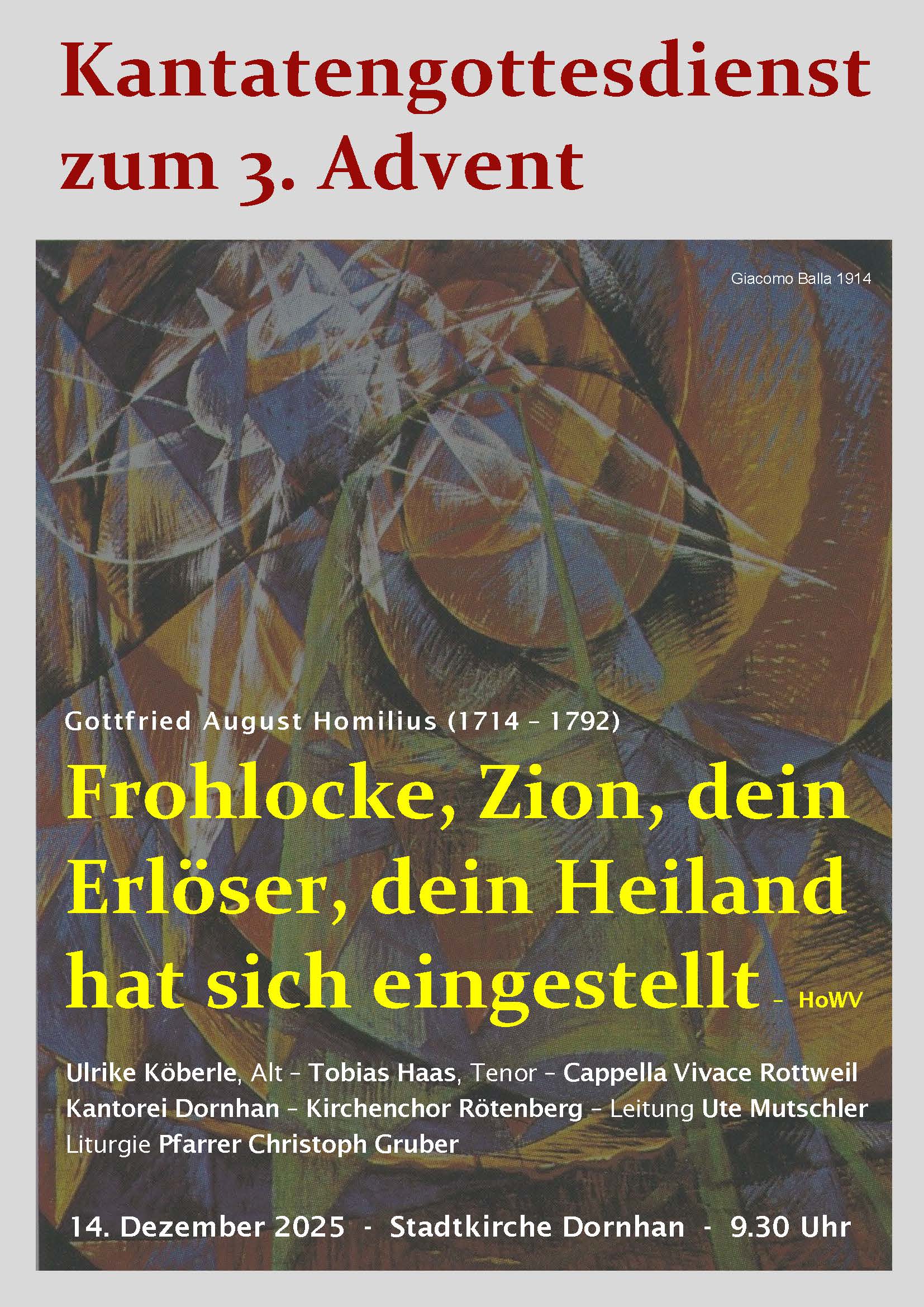 09.30 Uhr Kantatengottesdienst zum 3. Advent in der Stadtkirche Dornhan